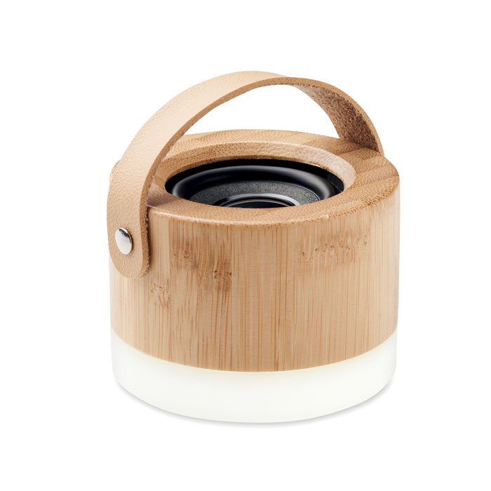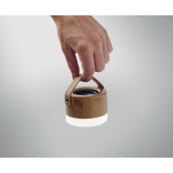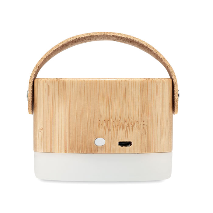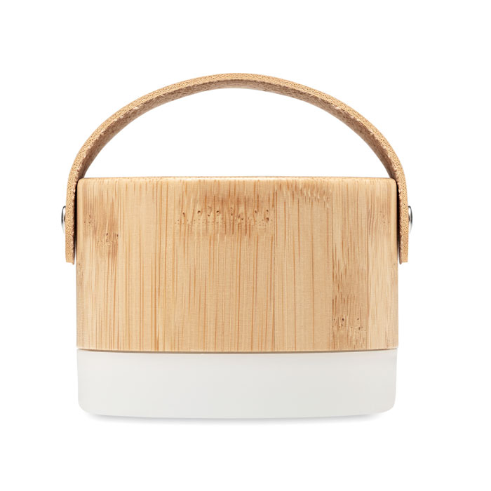 5.0 bežični zvučnik od ABS-a sa svjetlom, u kućištu od bambusa i PU remenom za nošenje.