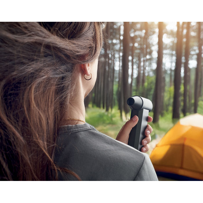 Nasilni ventilator. Prijenosna turbo puhalica s 3 LED svjetla i 4 postavke brzine vjetra do 130000 RPM. Brzina vjetra 35m u sekundi. Ugrađena 4000 mAh punjiva baterija. Možete koristiti ovaj uređaj kao čistač prašine, puhač, ventilator ili sušilo za kosu.
