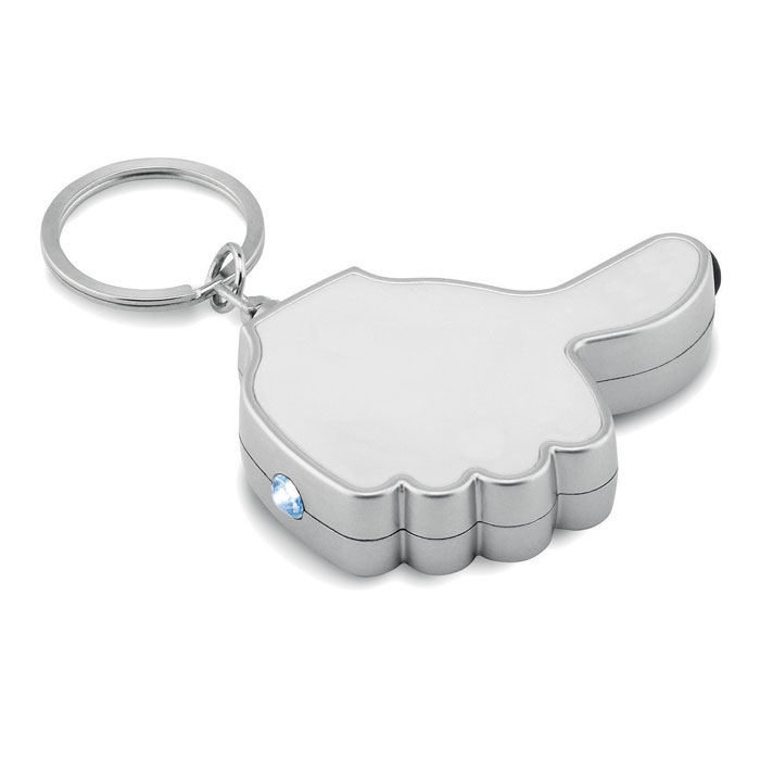 Privjesak za ključeve s LED svjetiljkom i nastavkom za ekrane osjetljive na dodir, u obliku “sviđa mi se”.