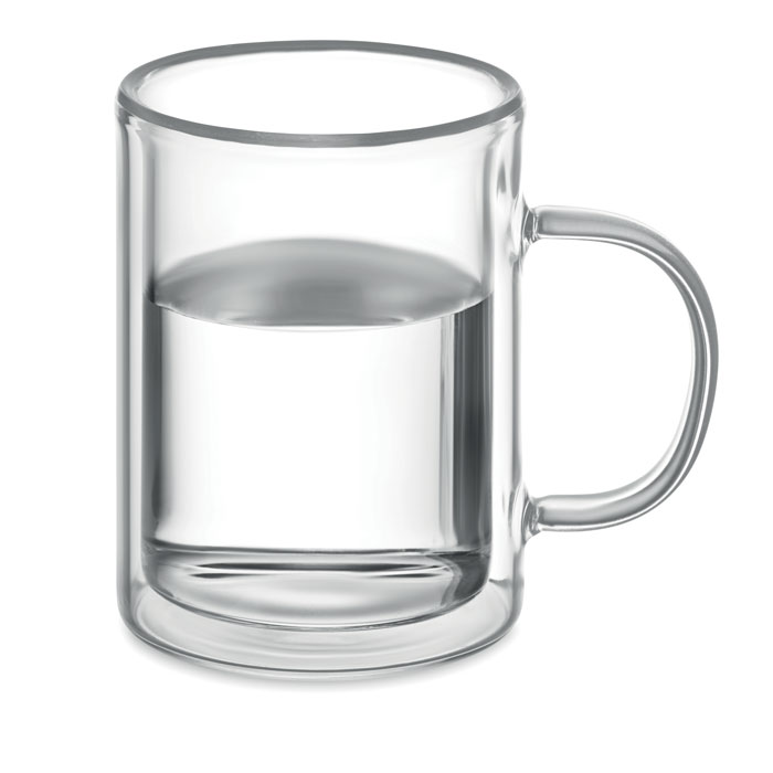 Staklena šalica s dvostrukom stijenkom, kapaciteta 225 ml i posebnim premazom za sublimaciju.