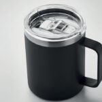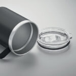 Dvoslojna šalica od recikliranog nehrđajućeg čelika (90% recikliranog nehrđajućeg čelika i 10% nehrđajućeg čelika) s kliznim poklopcem otvora za piće.
